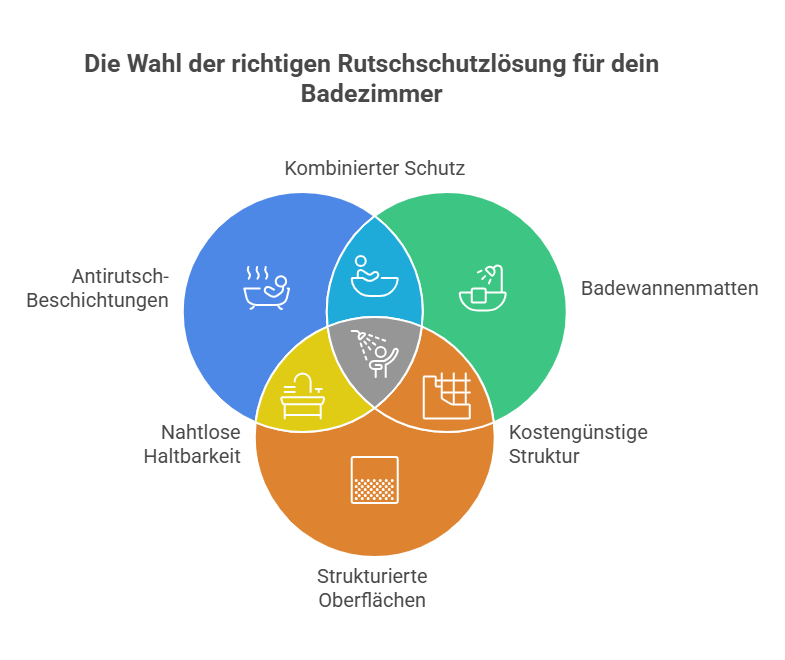 Badewannenmatten sind eine gute Übergangslösung, aber keine dauerhafte Antwort. Und strukturierte Oberflächen lohnen sich nur, wenn ohnehin eine neue Wanne geplant ist.